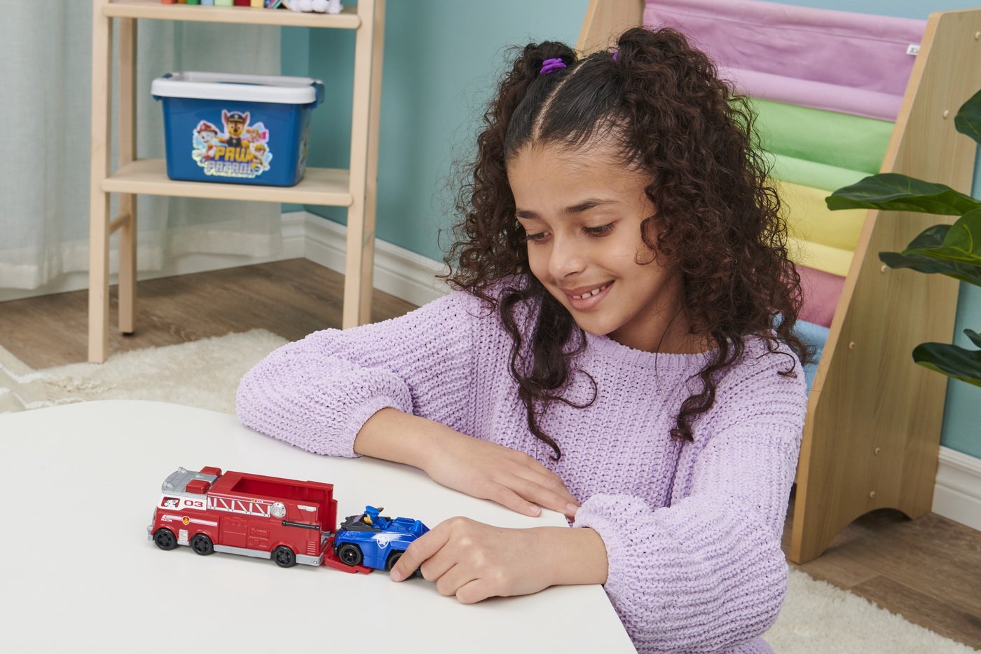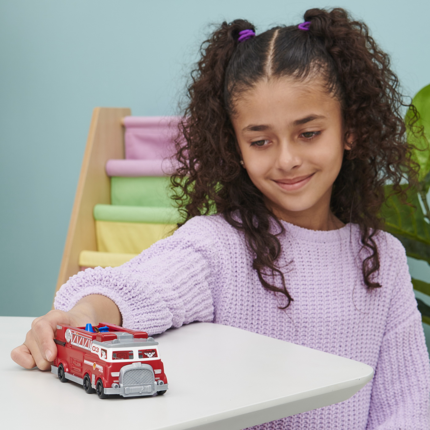 Alerga spre salvare cu masina de pompieri din metal adevarat a patrulei labutelor! Acest vehicul de echipa produs cu formare prin injectie este cel mai mare vehicul din metal adevarat al Patrulei Catelusilor, masurand peste 13cm lungime, si vine chiar si cu un vehicul de salvare cu Chase la scara 1:55, care poate fi incarcat direct in masina pompierilor! Trebuie doar sa cobori rampa de incarcare din spate, apoi sa conduci masina de salvare a lui Chase sus pe rampa, direct in masina de pompieri. Închide rampa, apoi porneste de la o misiune de salvare interesanta la alta! Masina de pompieri din metal adevarat poate gazdui oricare dintre vehiculele patrulei catelusilor din metal adevarat la scara 1:55 din colectia ta (masinutele suplimentare se vand separat). Copiii cu varste de 3 ani si peste se vor bucura de nesfarsite misiuni de salvare pline de actiune cu acest palpitant vehicul de pompieri al patrulei catelusilor din metal adevarat. Pentru mai multe aventuri de salvare de mare viteza, cauta masina de patrula a patrulei catelusilor din metal adevarat  (vanduta separat)! Jucariilepatrulei catelusilor din metal adevarat pentru baieti si fete cadoul perfect pentru fanii patrulei catelusilor.