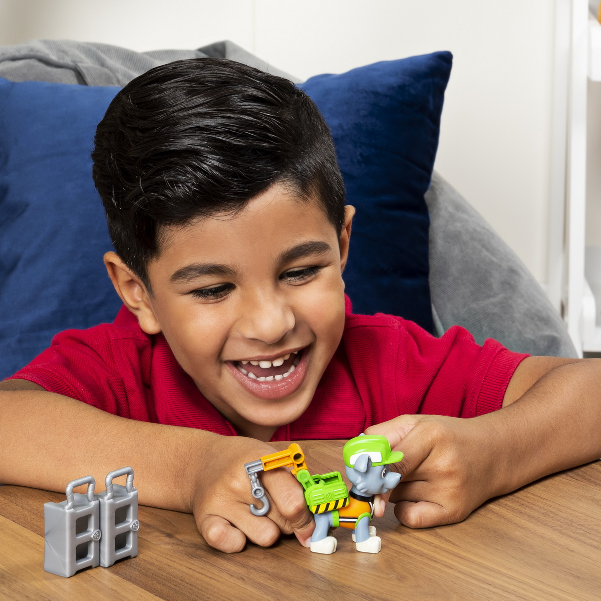 Devino eroul zilei cu Rocky, salvatorul suprem al constructiilor! Spre exemplu, ei vor purta uniforma de salvator suprem al constructiilor, casca de protectie si rucsac cu capac mobil - livrat cu conuri de siguranta suplimentare! Patrunde intr-o aventura in lumea constructiilor cu prietenul tau catelus!
