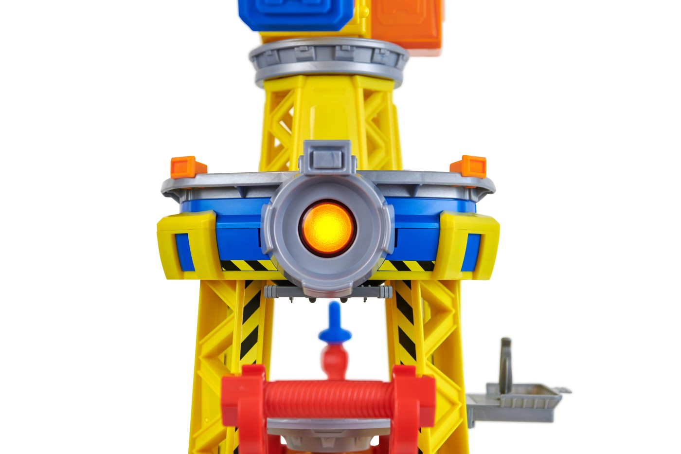 Rubble and Crew, set de joaca cu turnul de macara din curte cu figurina de actiune Rubble, buldozer de jucarie si nisip de joaca kinetic Build-It, jucarii pentru copii pentru baieti si fete de peste 3 ani. Cu Kinetic Sand Build-It-Sand si matrite pentru blocuri de constructie: legendarul nisip de joaca inclus (340 g) poate fi modelat in blocuri de constructie gustoase din nou si din nou cu presa de blocuri de constructie. Figurina de jucarie extra Rubble si vehicul de constructie cu buldozer: cu figurina de actiune detasabila Rubble in uniforma de santier si vehiculul sau de constructie buldozer cu lopata si excavator mobil, actiunea de constructie este in curtea cladirii.