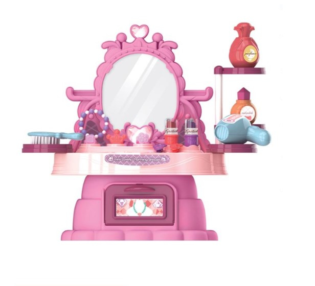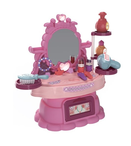 Setul contine o mini masuta cu oglinda si 24 de accesorii pentru machiaj si coafat. Setul este destinat fetitelor cu varsta cuprinsa intre 3-7 ani.