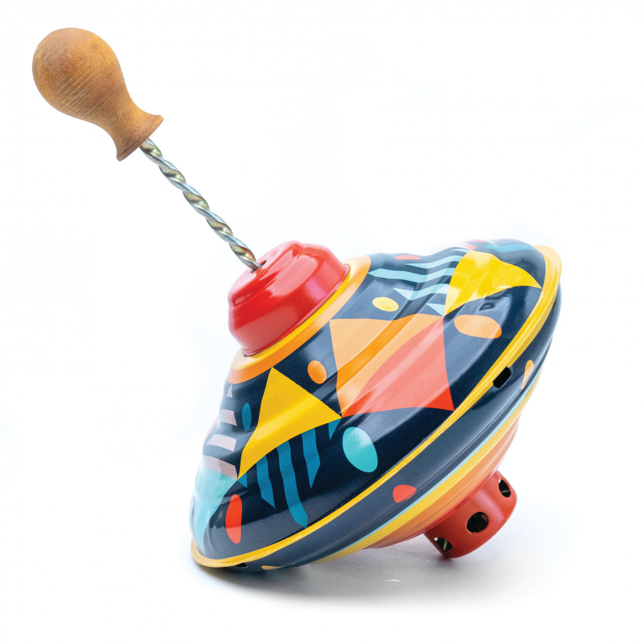 Titirez din metal cu zumzait Combină joaca cu învățarea. Pompează mânerul de căteva ori pentru a vedea cum se învârte titirezul și pentru a-l auzi cum zumzăie, pe măsură ce capătă viteză. Designul său frumos este pe bază de albastru cu puncte de mai multe mărimi și culori care fac trimitere la confetti! O jucărie clasică făcută să dureze! Dimensiune titirez 16 x 16 x 17 cm Confecționat din metal și plastic, conform reglementărilor EN71 & ASTM. Vârsta recomandată: + 3 ani. Avertisment: Contraindicat copiilor sub 3 ani. A se utiliza sub stricta supraveghere a unei persoane adulte. Producător: Svoora, Grecia.