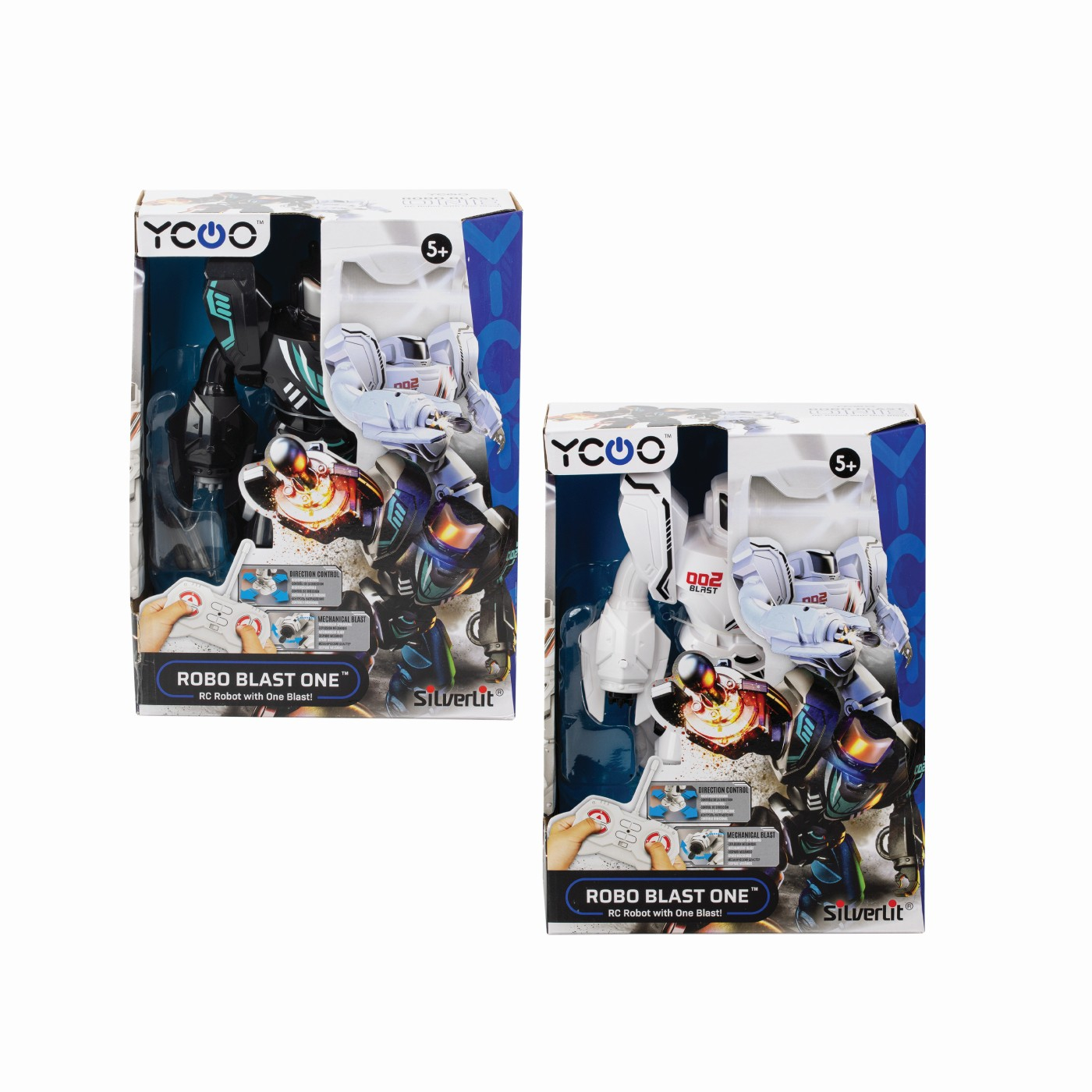 Robo Blast One! Robot controlat de la distanta care trage! Pregateste-te pentru distractie si emotie fara sfarsit cu ROBO BLAST ONE! Telecomanda, dimensiuni ergonomice. Lansare mecanica puternica prin apasarea unui buton de pe brat. 3 sageti sunt incluse in pachet. Disponibil in 2 culori: alb sau negru. Dispune de telecomanda cu control in 4 cai. Orice ai cauta intr-un robot, suntem siguri ca il vei gasi in lumea robotilor Silverlit. O gama larga de jucarii robotizate cu un singur scop comun: tehnologie pentru toate varstele si interesele. Distractie, inovatie si interactiune, intr-un singur brand. Robo Blast One!