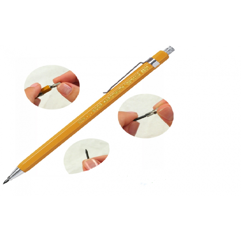 Creion mecanic 2.0mm Koh-i-noor Versatil K5201C, ascutitoare+clips metalic, galben.