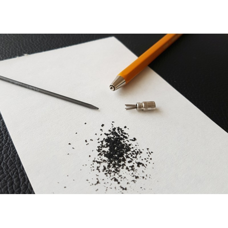 Creion mecanic 2.0mm, corp metalic hexagonal galben, cu ascutitoare