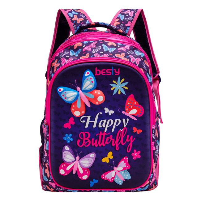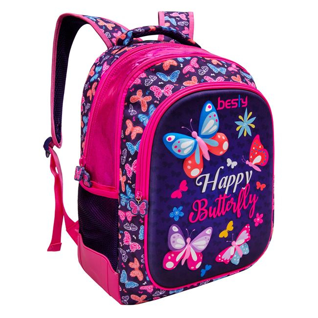 Ghiozdan 3 compartimente fete pentru scoala,model Hapyy Butterlfy 3D,30x18x47 cm