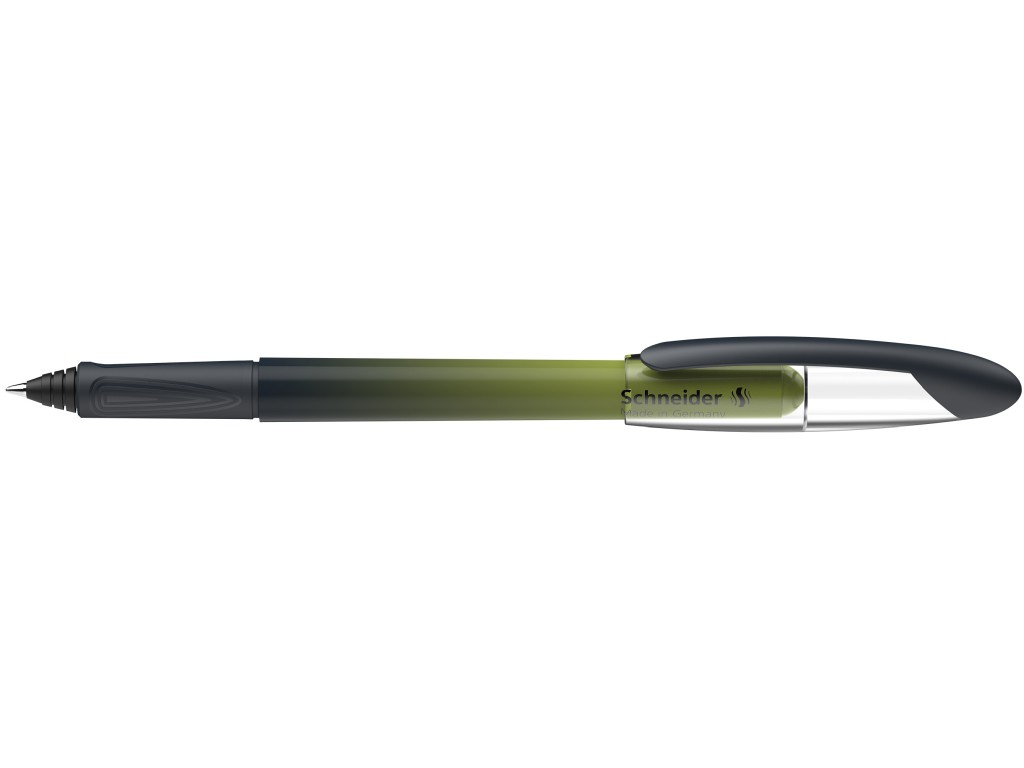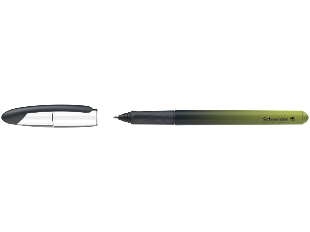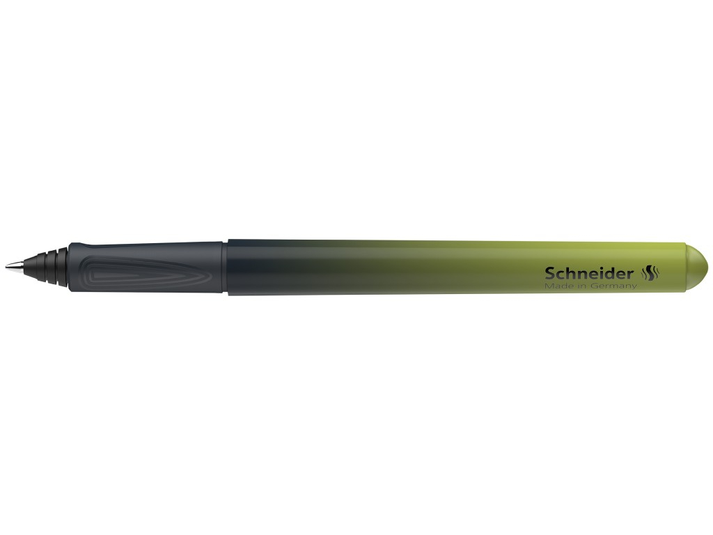 Noile modele 2023 Roller Schneider Voyage au un design gradient, imprimat cu tonuri de verde. Scrisul fluent și frumos este garantat de compatibilitatea cu rezervele de cerneală Schneider.