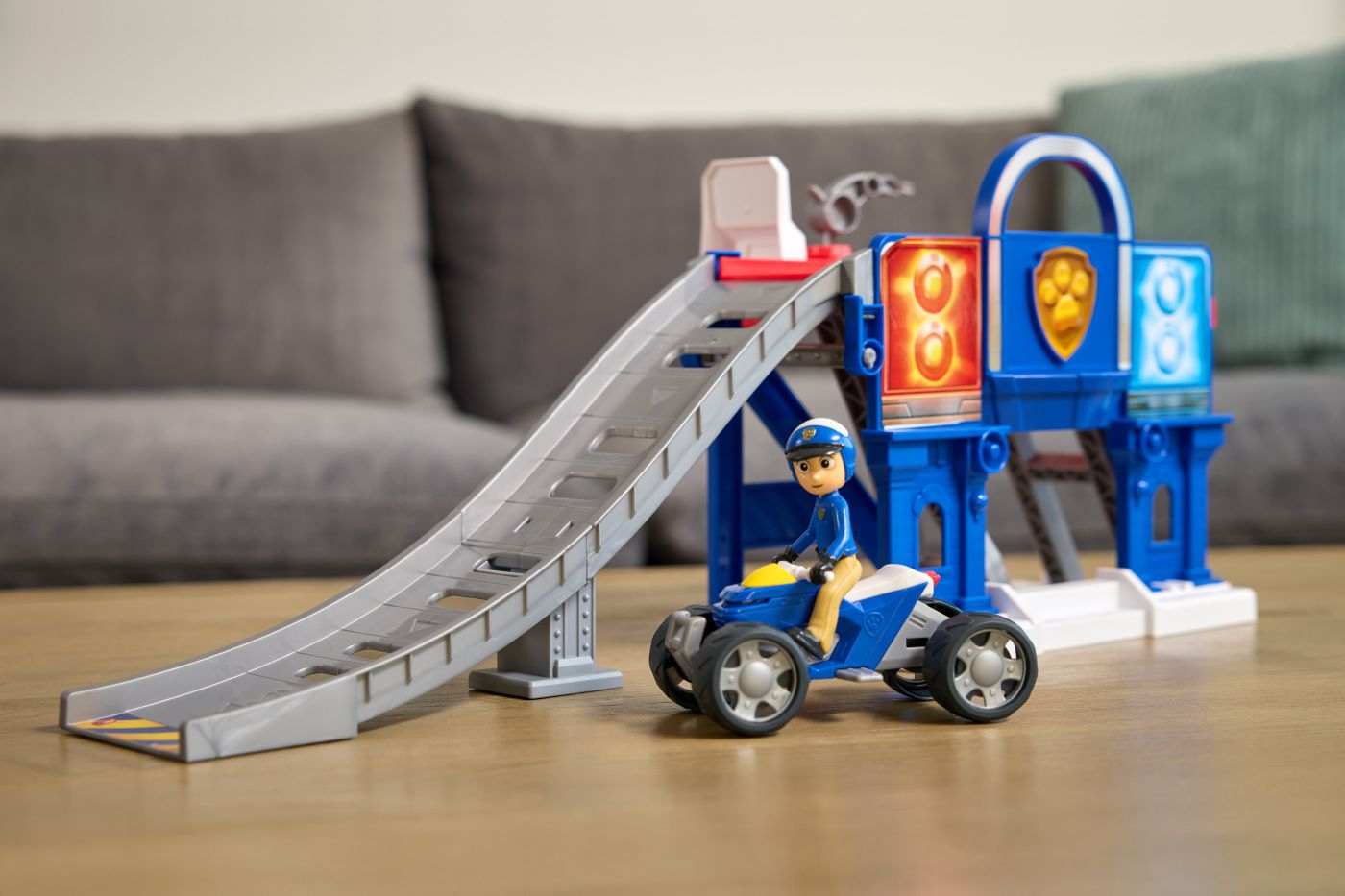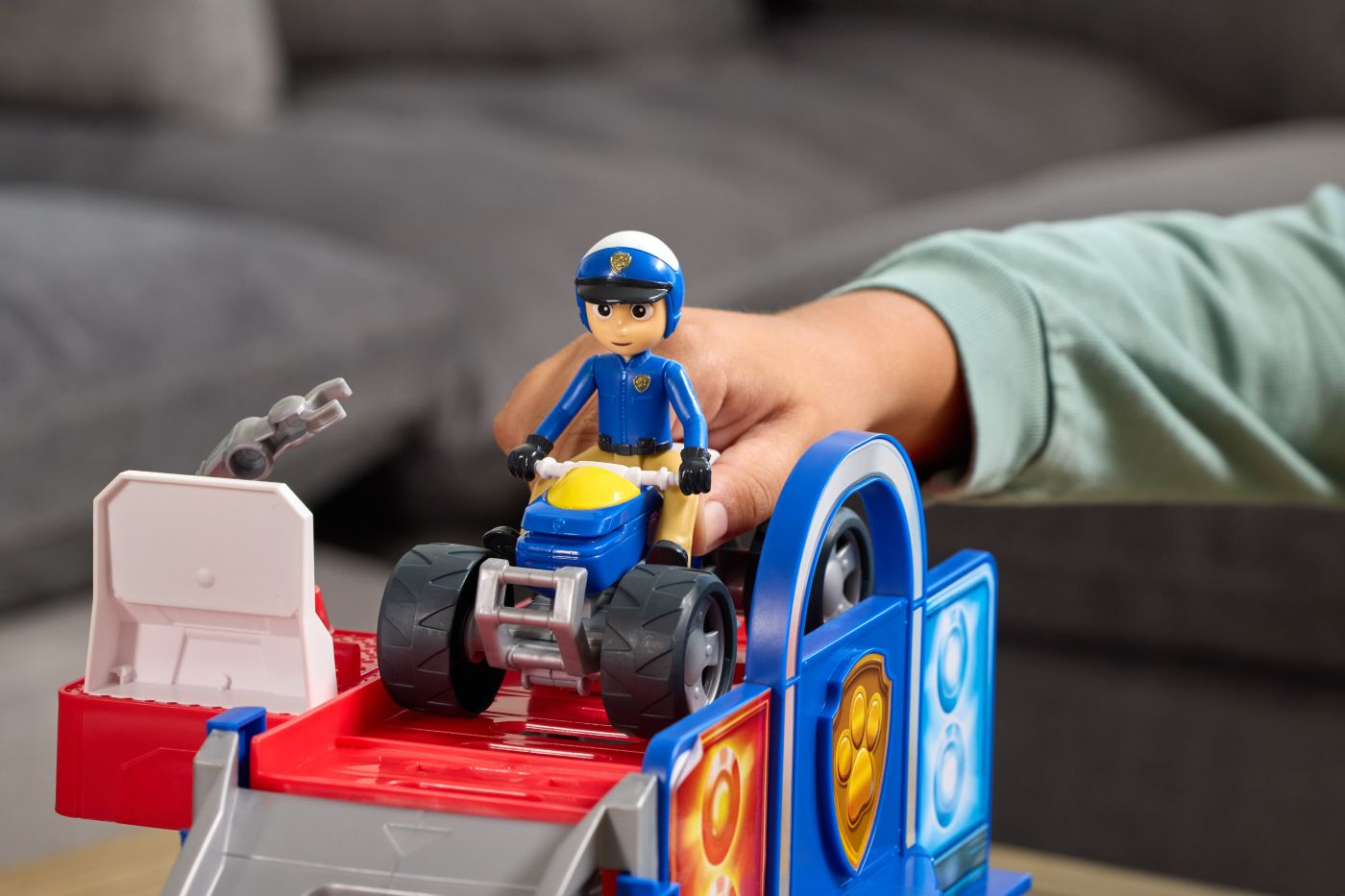Setul De Joaca Cautare Si Salvare Ridica Si Repara ofera copiilor ocazia de a recrea misiuni spectaculoase de interventie si reparatii alaturi de eroii preferati. Pachetul include o figurina exclusiva Ryder si un vehicul ATV, pregatite pentru actiune imediata. Platforma este prevazuta cu rampa de lansare, lift functional si zona de reparatii, astfel incat vehiculul sa poata fi ridicat, verificat si trimis inapoi in misiune in doar cateva momente. Elementele grafice luminoase si detaliile inspirate din serial adauga realism si dinamism fiecarei sesiuni de joaca. Copiii pot urca ATV-ul pe rampa, il pot pozitiona pe lift pentru verificare, apoi il pot lansa din noua viteza maxima pentru o noua salvare. Setul este realizat din materiale rezistente, potrivit pentru copii peste 3 ani, si contribuie la dezvoltarea imaginatiei, a jocului de rol si a coordonarii mana-ochi, fiind o alegere ideala pentru fanii Patrula Catelusilor care iubesc actiunea si provocarile tehnice.