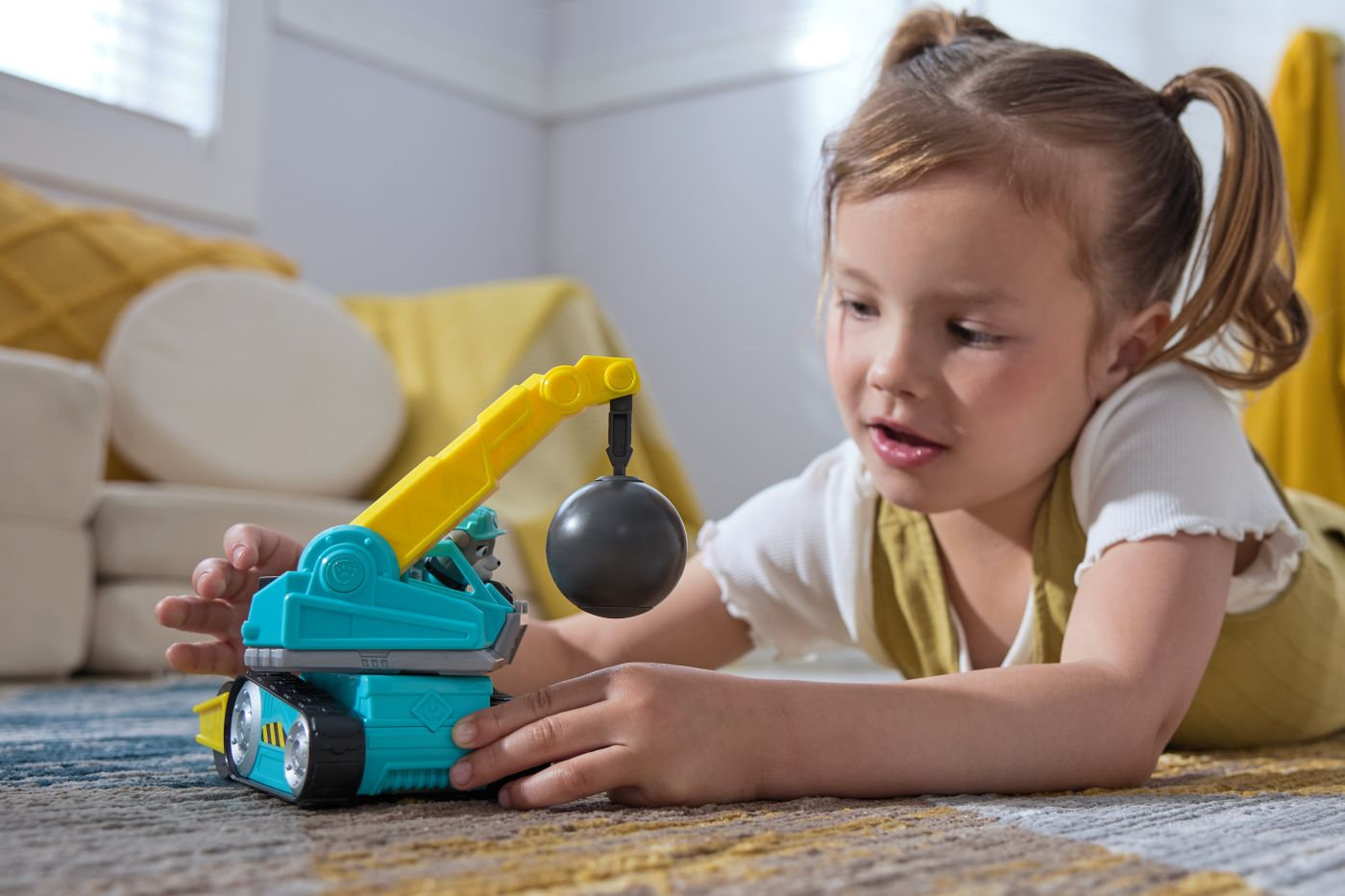 Rubble Si Echipa Vehicul Cu Bila De Demolare este un set de constructii plin de actiune, inspirat din aventurile echipei Rubble. Pachetul include vehiculul cu brat mobil si bila de demolare, precum si turnul de santier, oferind copiilor posibilitatea de a recrea lucrari spectaculoase de demolare si constructie. Designul colorat si detaliile inspirate din serial transforma fiecare sesiune de joaca intr-o misiune autentica pe santier. Bratul utilajului se poate misca pentru a ridica si balansa bila de demolare, permitand dragostea si ducerea elementelor din set. Vehiculul este usor de manevrat, iar componentele interactive incurajeaza jocul activ, imaginatia si dezvoltarea coordonarii mana-ochi. Recomandat copiilor cu varsta de peste 3 ani, acest set este ideal pentru micii constructori si pentru fanii Rubble Si Echipa care vor sa extinde lumea santierului acasa.