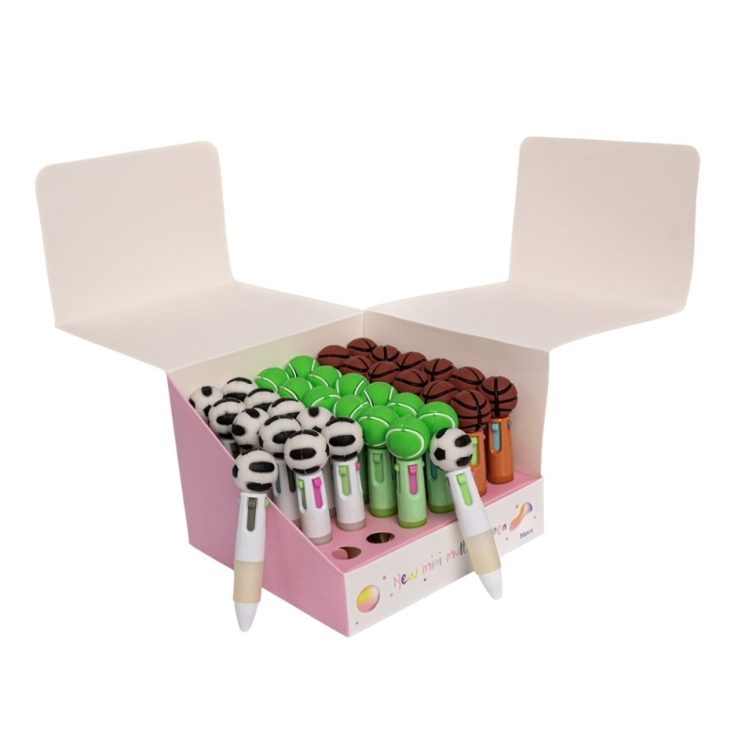 Pix mini cu 4 culori și mecanism retractabil, model minge sport (fotbal, baschet, tenis). Ideal pentru copii și școală. Preț per bucată.