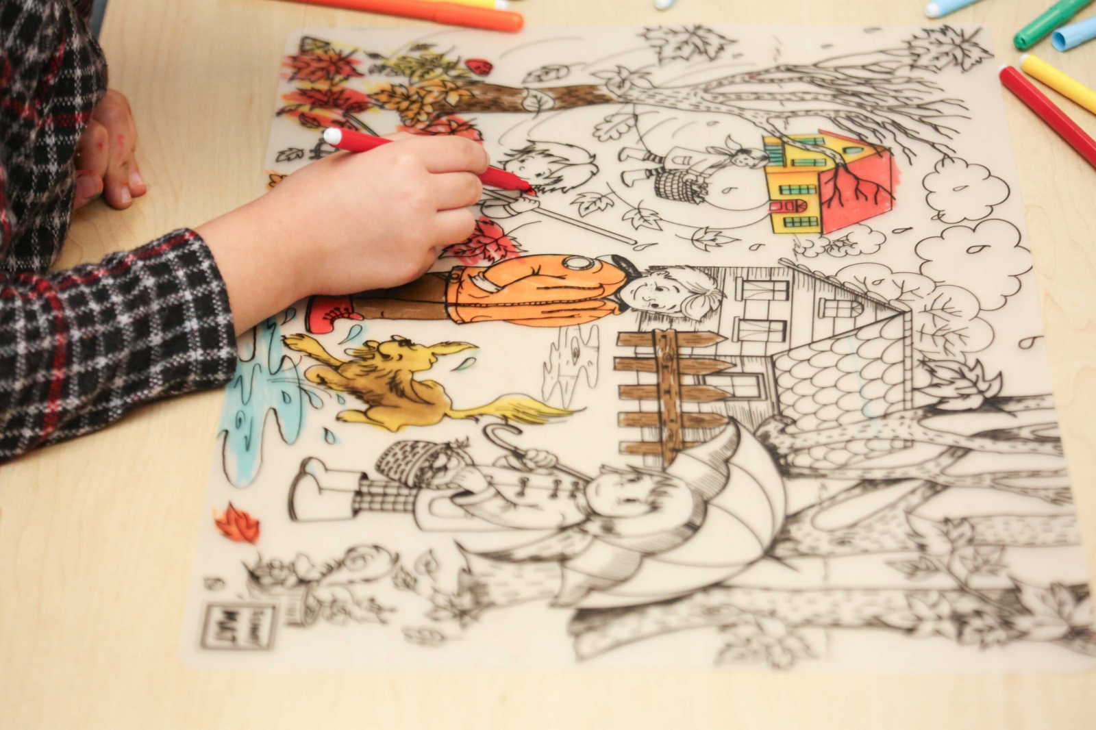 Plansa reutilizabila cu desene de colorat, model Toamna,48x33.5 cm