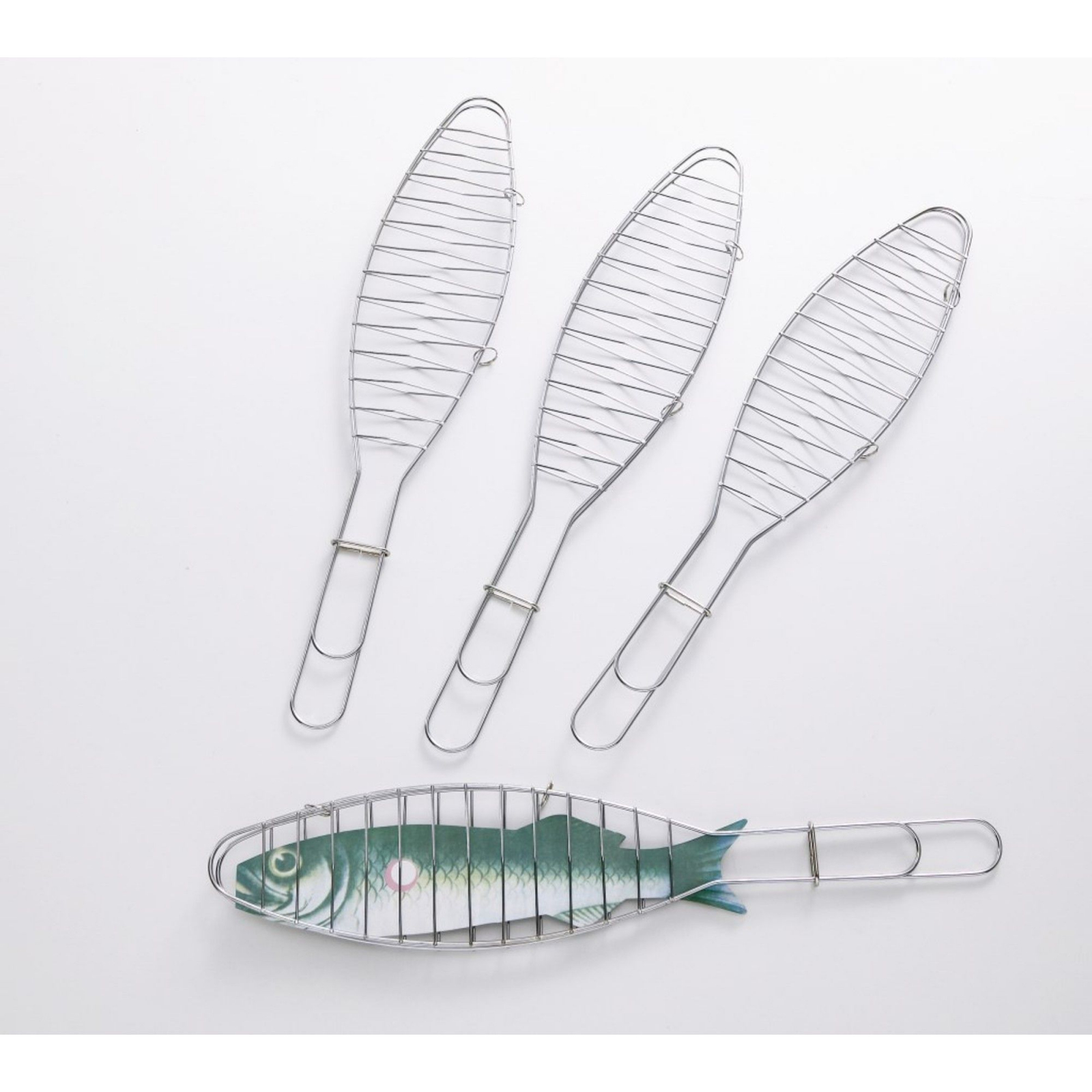 Gratar pentru peste din otel cromat, cu dimensiunea de 42 x 9 cm.